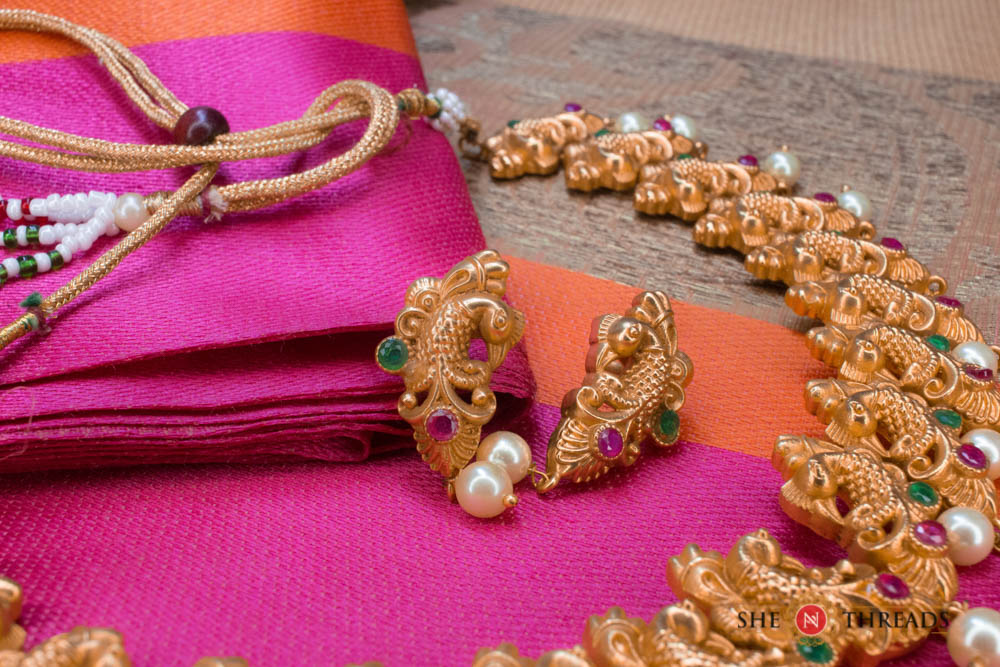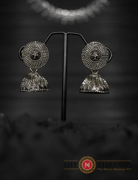 An attractive pair of oxidised gold plated handmade Jhumki earrings.