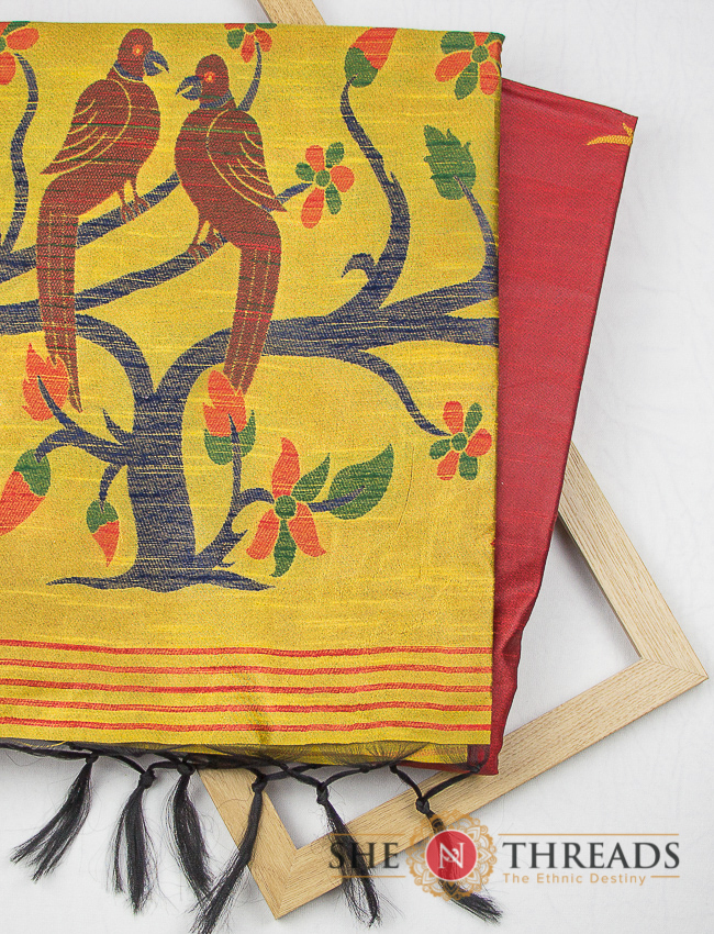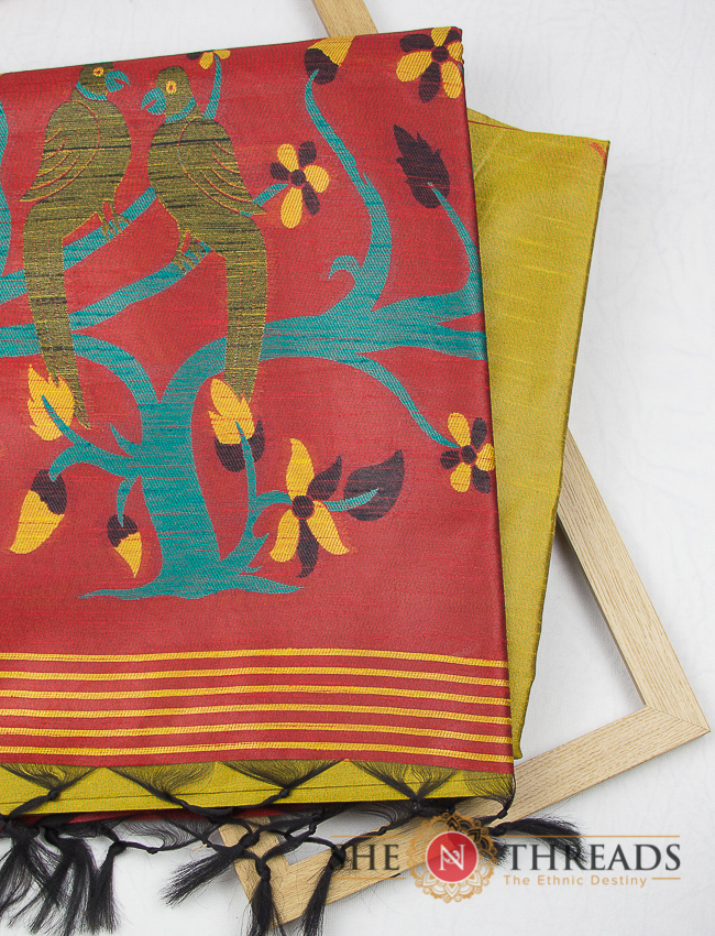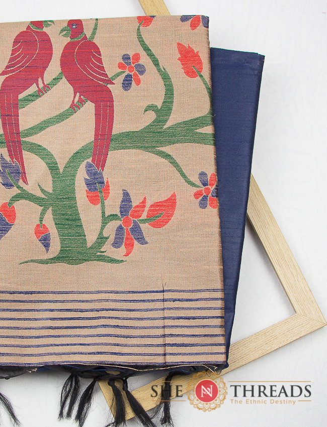 - The saree should be air dryed in shade. Do not scrunch or rub the saree vigorously or use it in the washing machine or dryer.