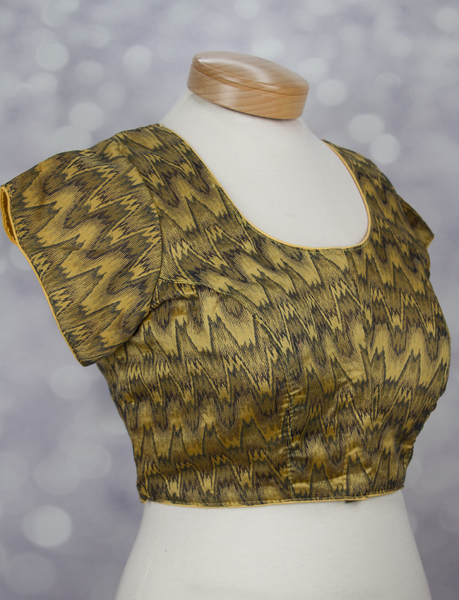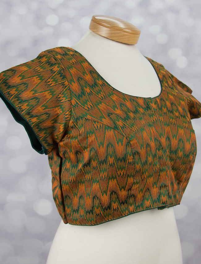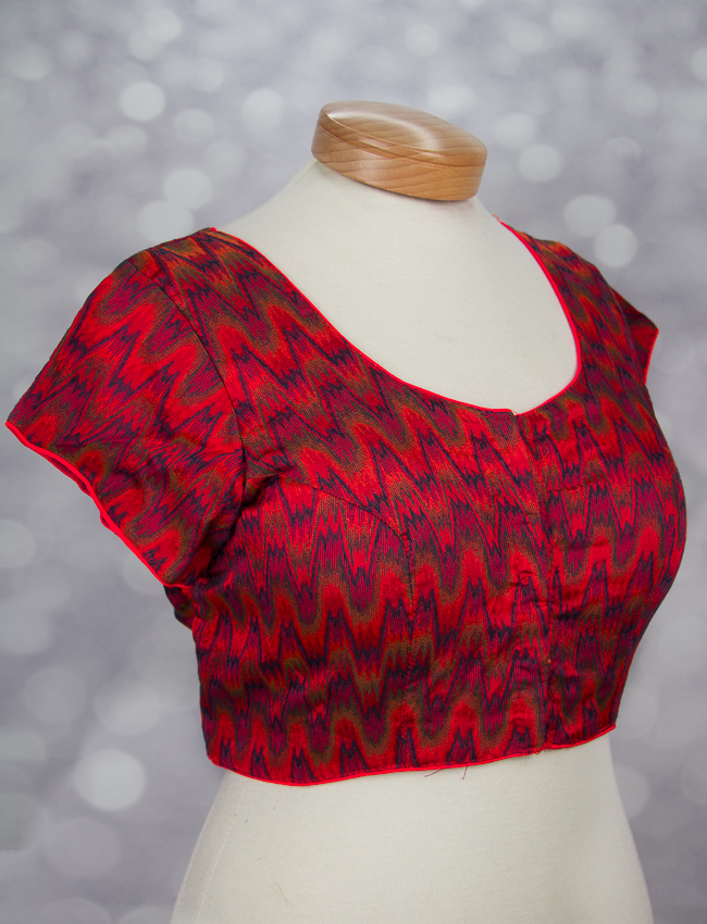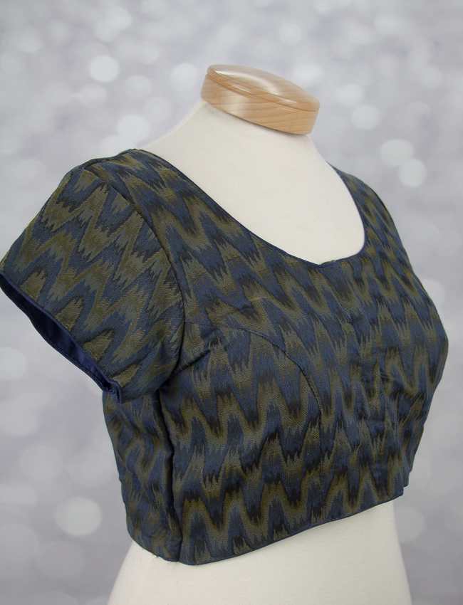 This beautiful blouse is threaded with Ikat cotton. Ikat cotton fabric comes with a zigzag pattern. It is perfect for day wear.