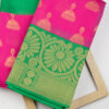 An Elegant and beautiful Kancheepuram Cotton Silk saree from the temple town of Kanchipuram located in Tamil Nadu. These wonderful sarees are pure Kanchipuram Silk sarees that are exquisitely fashioned with beautiful traditional patterns that exudes a royal vibe and are known for their richness and grandeur.