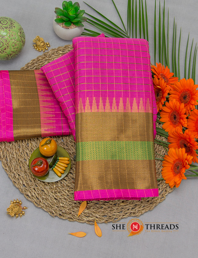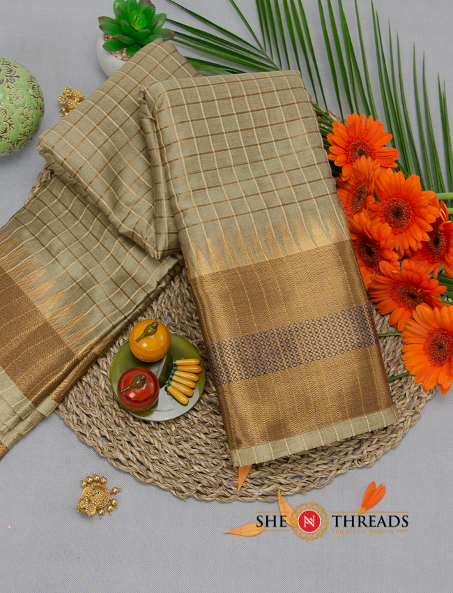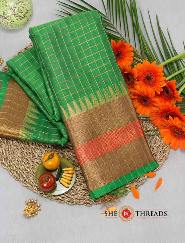 Checked Cotton Silk Saree with small Checks and Zari border. Simple yet filled with elegance.