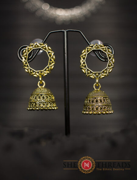 An attractive pair of oxidised gold plated handmade Jhumki earrings.