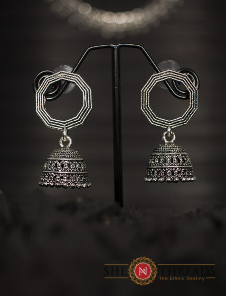An attractive pair of oxidised silver plated handmade Jhumki earrings