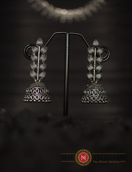 An attractive pair of oxidised silver plated handmade Jhumki earrings