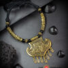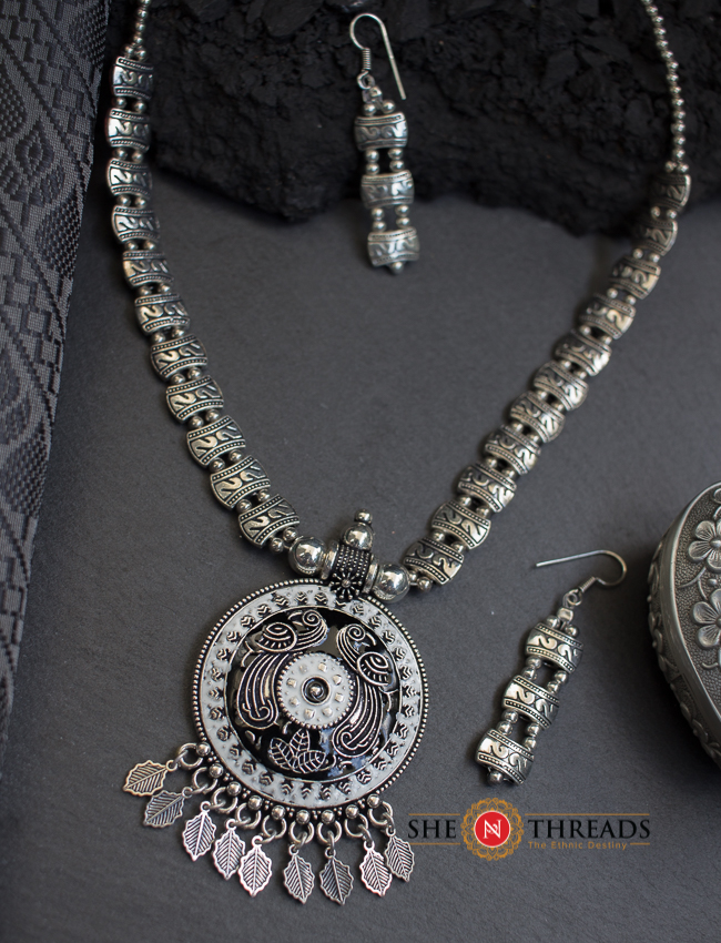 Oxidized Metal Chain with Pendant and Earrings, trendy western and antique look necklace