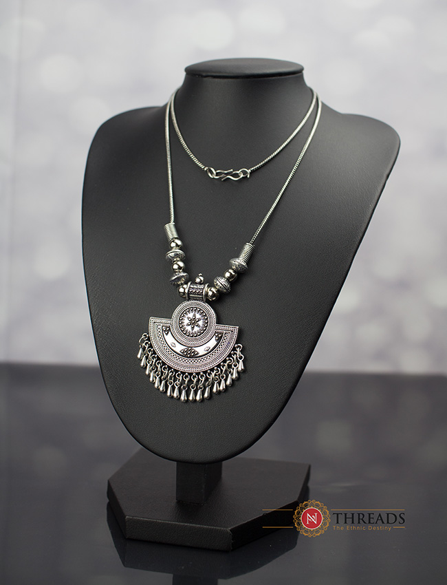 Oxidized Metal Chain with Pendant, trendy western and antique look necklace
