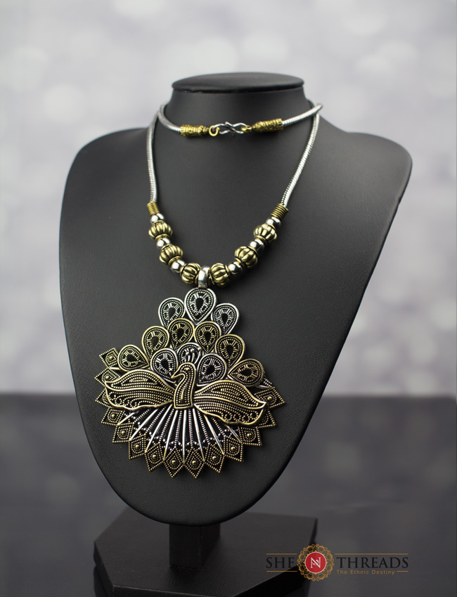 Oxidized Metal and Gold Polished Chain with Pendant, trendy western and antique look necklace