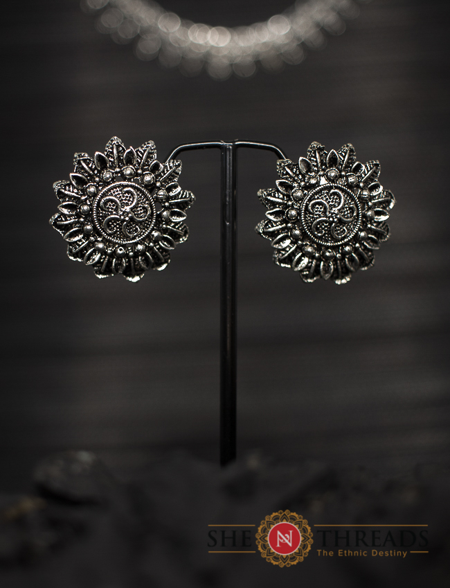 An attractive pair of oxidised silver plated handmade Jhumki earrings