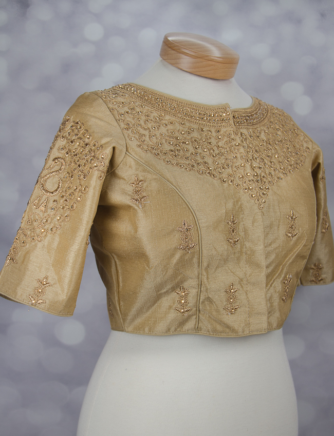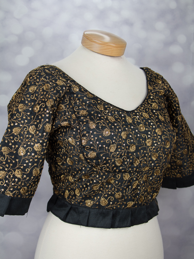 A Fully Stitched Padded Brocade Blouse with half Sleeves and with Strings attached.